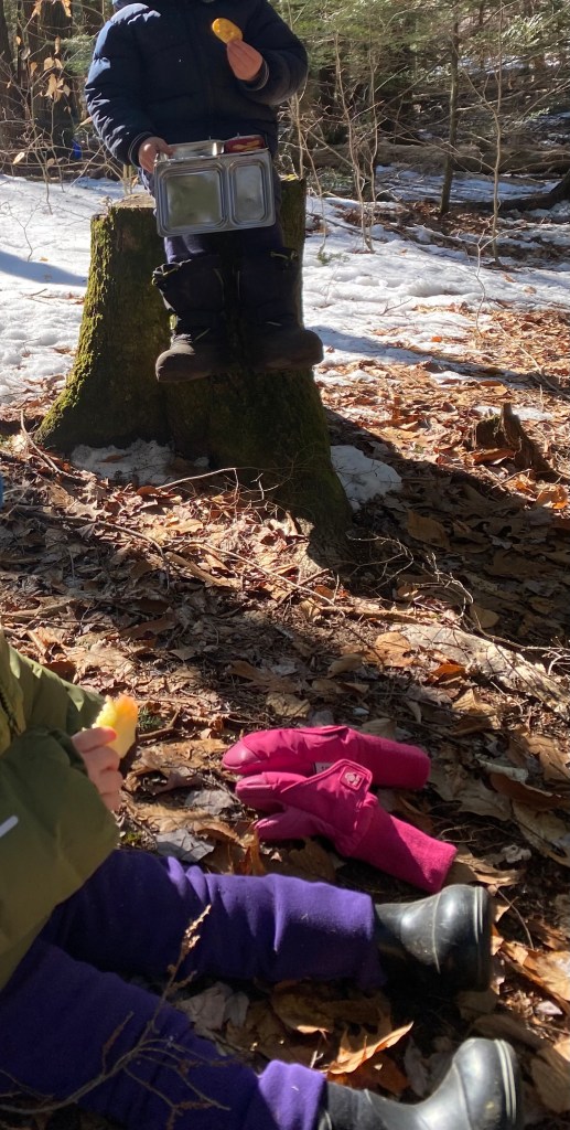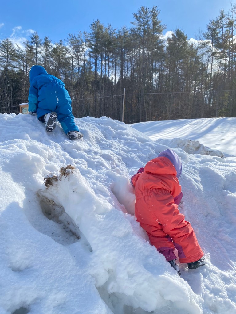 To be clear, heading outside right after breakfast wasn’t always my favorite. Helping the kids get into their winter gear is…difficult for me. However, brushing up against the friction we experience when the kids’ don’t get the post breakfast free play they need, is also difficult. A good friend recently reminded me of one of my favorite mantras: “choose your hard”.