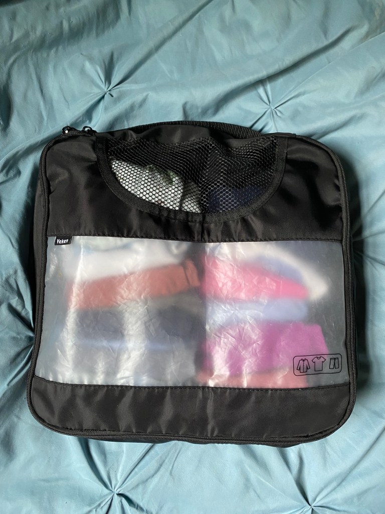 These packing cubes are deep enough to allow for efficient folding methods. They also have a buttery smooth zipper, which I appreciate, and a screen so you can easily see to whom the cube belongs.